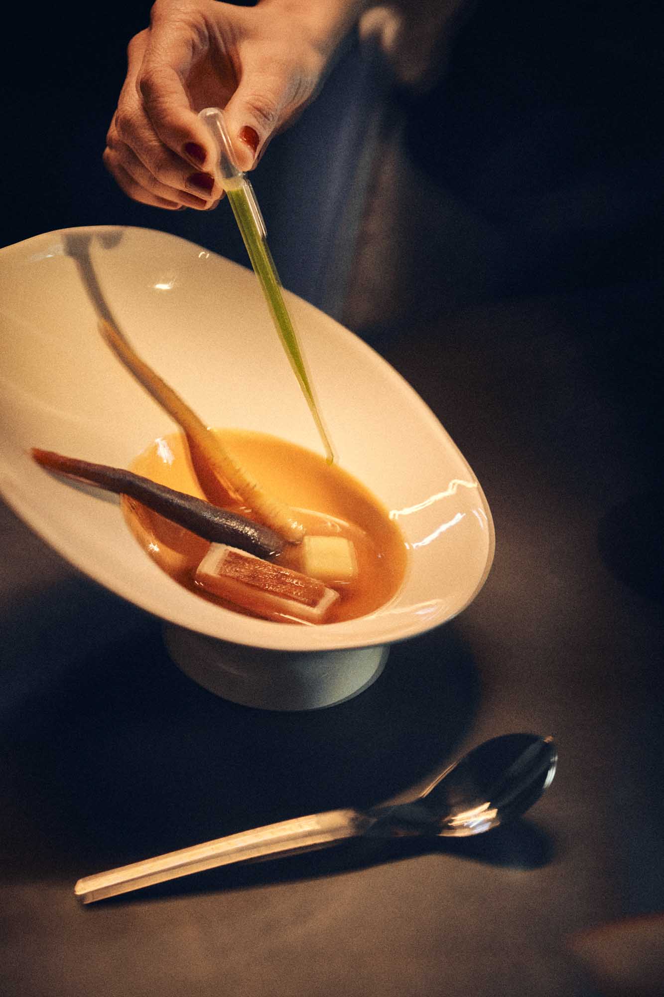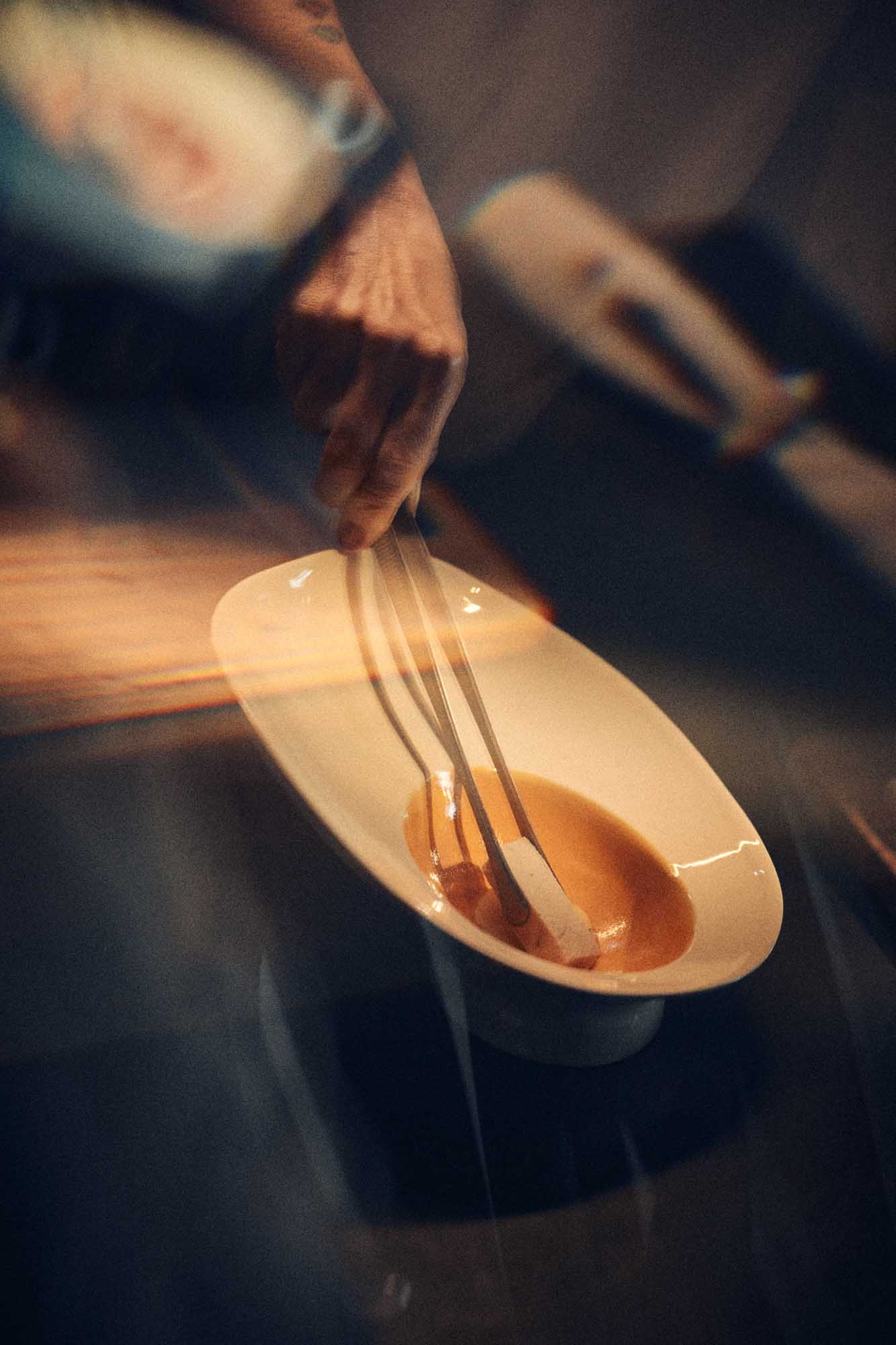Designed specifically for the dish featured in Episode 2 – „Ab Ovo…“ , this plate is not a passive surface but an active structure – shaping how the food rests, moves, and is experienced. It brings together form and function in a way that feels instinctive, almost inevitable.