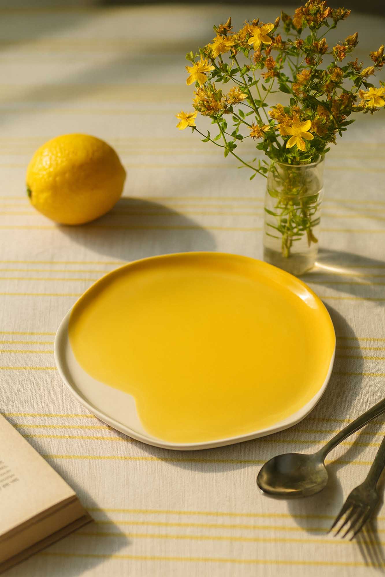 We’ve been working with Cadmium Yellow for years, and it still surprises us. It’s a bridge — carrying summer’s brightness into autumn’s depth. When it shows up on porcelain, something happens: meals feel more grounded, more generous, more alive.